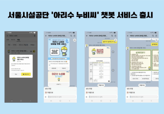 위의 사례는 서울시설공단이 도입하는 ‘아리수 누비씨 카카오톡 모바일 챗봇 서비스’ 이용 예시 사례를 가정해 설명한 것이다.